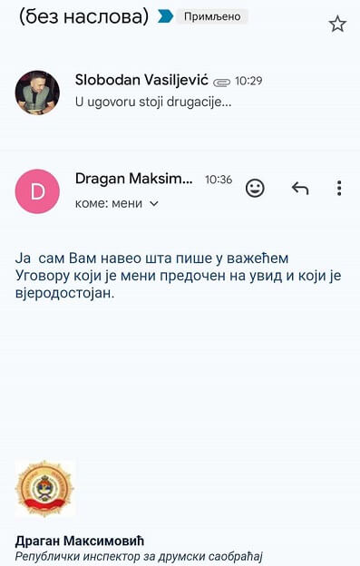Vasiljević je odlučio da istjera do kraja čitavu ovu stvar, pa se nedugo potom obratio saobraćajnom inspektoru Draganu Maksimoviću koji je sebe proglasio nenadležnim i čitavu stvar vratio na Ugovor između JP “Putevi RS” i Gorana Lazarevića.