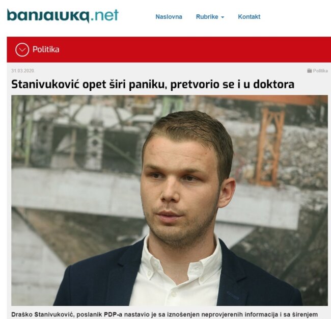 Sa druge strane, čini se da je glavna „meta“ ovog portala banjalučki PDP i Draško Stanivuković, na kojeg se medijska municija ispaljuje redovno.