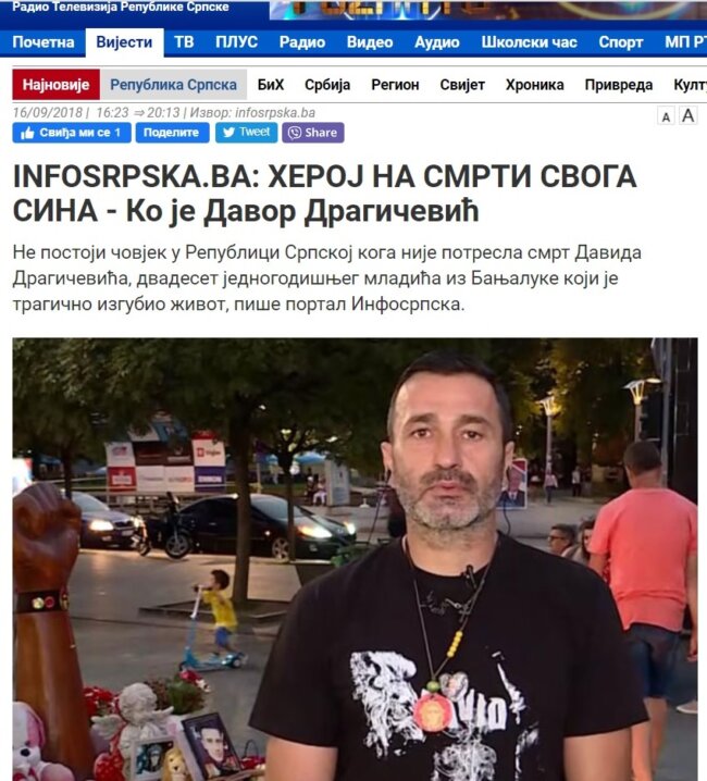 Tako je za vrijeme protesta građana u borbi za istinu i pravdu u slučaju ubistva banjalučkog studenta Davida Dragičevića, navedeni portaloid redovno objavljivao dezinformacije i spinove koji su najčešće bili upućeni protiv Davidovog oca Davora. Sadržaji su redovno preuzimani od strane SRNA-e i RTRS-a i plasirani u javnost, ne samo putem veb platformi, nego i centralnih informativnih emisija.