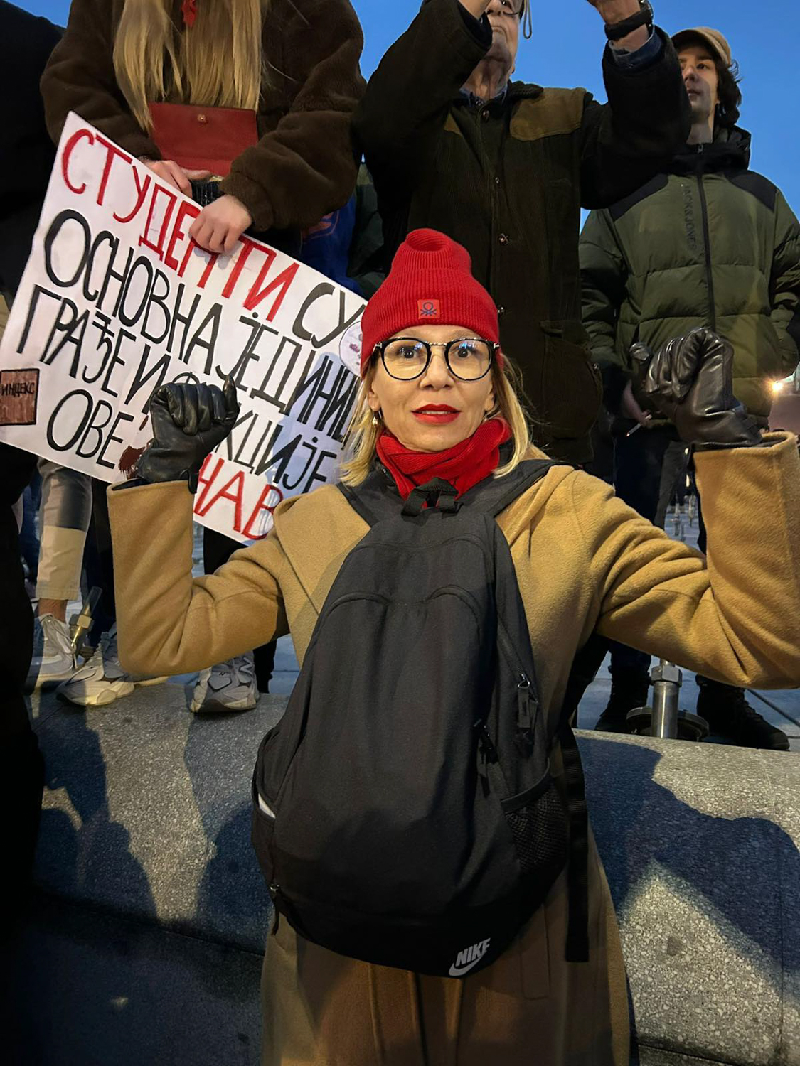 Slađana Đukić Stokić iz Beograda predana je studentsko-građanskoj borbi. Majka je troje dece, za čiju je bezbednost zabrinuta tokom svakog protesta.