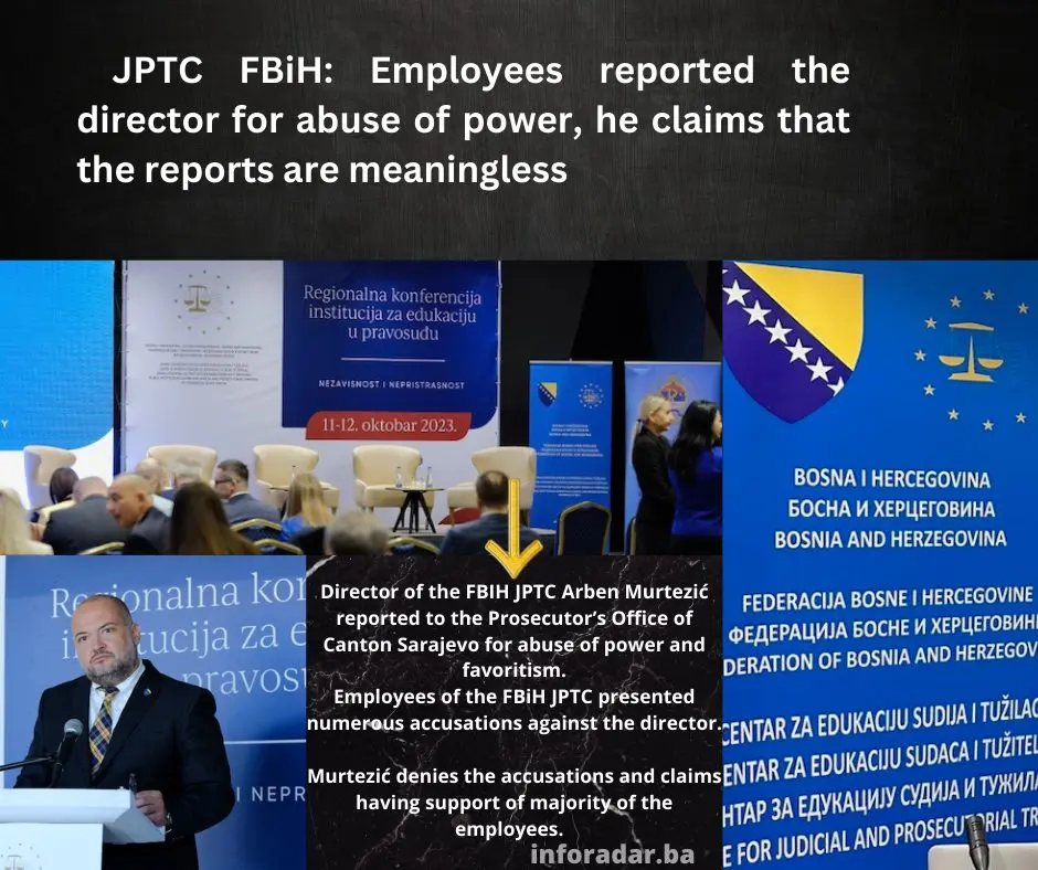 The High Judicial and Prosecutorial Council of Bosnia and Herzegovina has confirmed receiving an anonymous report in 2021, but about Arben Murtezić not being appointed director of the JPTC, due to which the Council had on several occasions in 2022, in line with its competence, considered responsibility of the members of the FBiH
