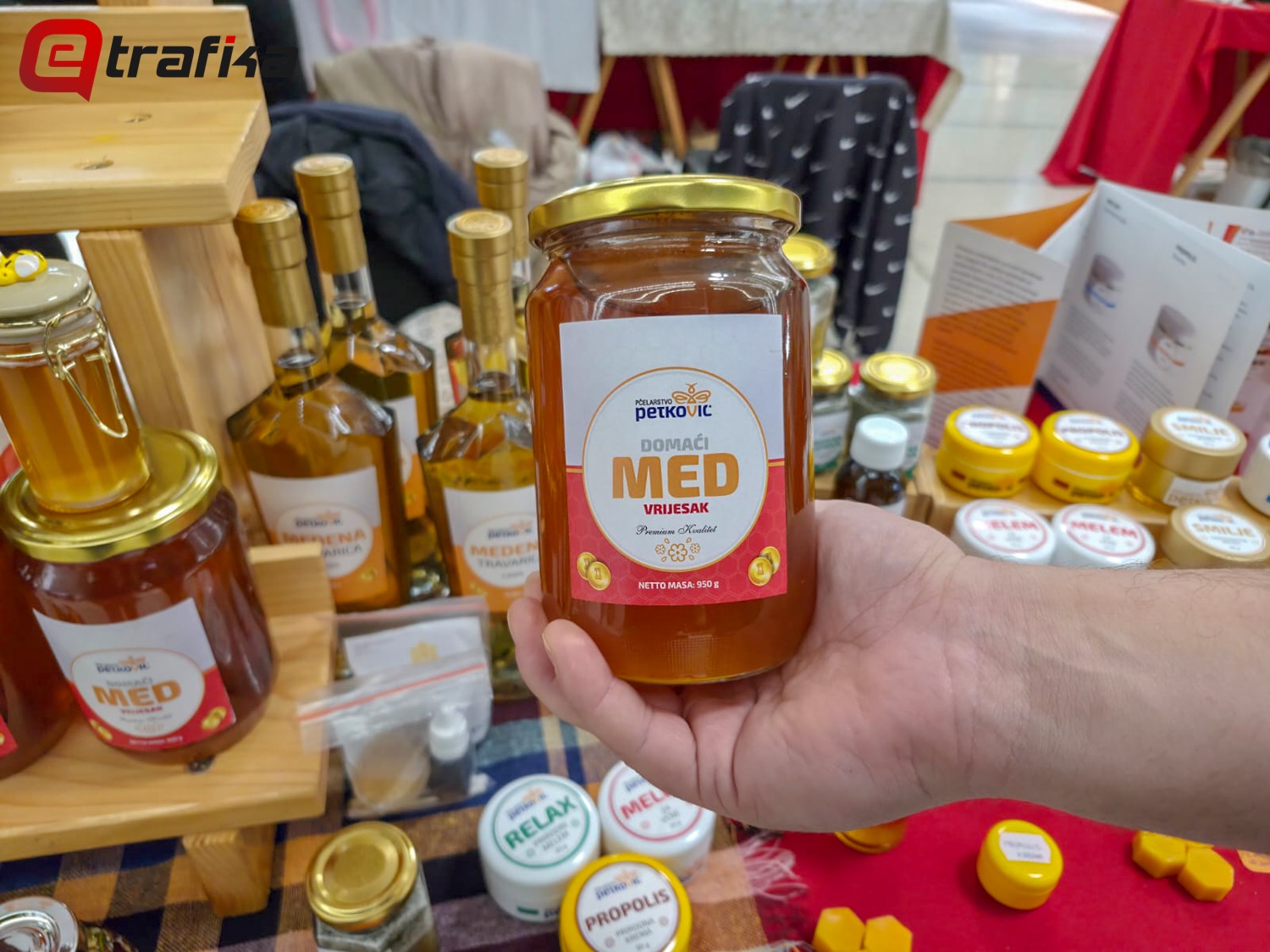 Često se sa sajma kući vraćaju sa medaljom za najuređeniji štand, a ono što je važnije, osim vizualno dobrog utiska, jeste kvalitet proizvoda. Prošle godine u Tuzli, Nemanja je osvojio pet zlatnih medalja: za livadski med, vrijeskov med, sirup protiv kašlja, pergu med i propolis kremu.