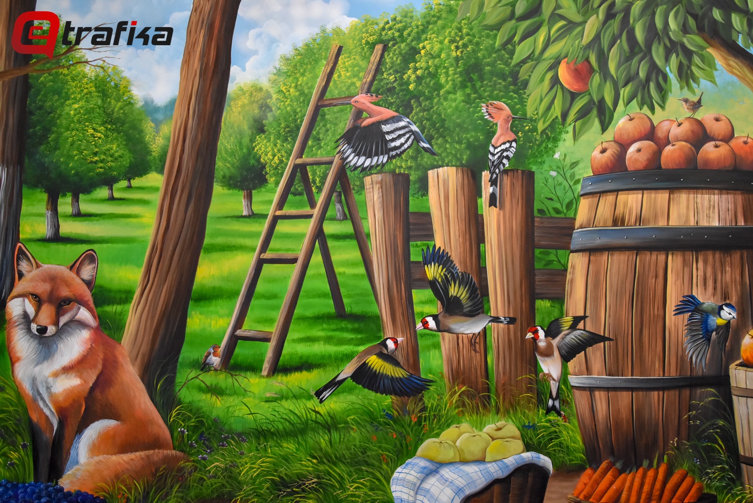 Osim ptica, na etiketi soka od jabuke i grožđa pojavljuje se i jedini sisar u njihovom asortimanu, lisica. Taj izbor nije slučajan, već se direktno oslanja na Ezopovu basnu o lisici i grožđu, čime etiketa dobija dodatni sloj značenja.