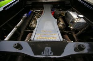 The engine of a handmade replica of Lamborghini Diablo is pictured outside a garage rented by Wang Yu and Li Lintao on the outskirts of Beijing, August 21, 2014. Chinese race car enthusiasts Wang Yu and Li Lintao, both in their 30s, have finished designing and making two replicas of the Lamborghini Diablo, which can reach the top speed of 310km/h, and are currently working on a replica of the T-Rex motorcycle. They spent approximately 5 million yuan (around USD 811,899) to buy parts and hire workers, and about 6 years to assemble them with the knowledge they gained from studying mechanology for nearly a decade abroad. Wang and Li went popular after showing their first handmade replica of Lamborghini Diablo at the Beijing International Automobile Exhibition in 2012, and sold their second Lamborghini replica to Alibaba as a collection. Picture taken August 21, 2014. REUTERS/Petar Kujundzic (CHINA – Tags: TRANSPORT SOCIETY BUSINESS SCIENCE TECHNOLOGY)
