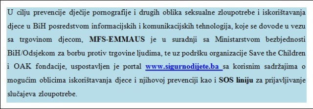 Budući da su jedna od aktivnosti MFS-EMMAUS kancelarije u Sarajevu istraživanja u vezi oblasti trgovine ljudima u BiH, a u saradnji sa profesionalnim agencijama i drugim stručnjacima, a dosadašnji rezlutati pokazuju da javnost ne raspolaže potpunim i adekvtanim informacijama kada je trgovina djecom u pitanju.