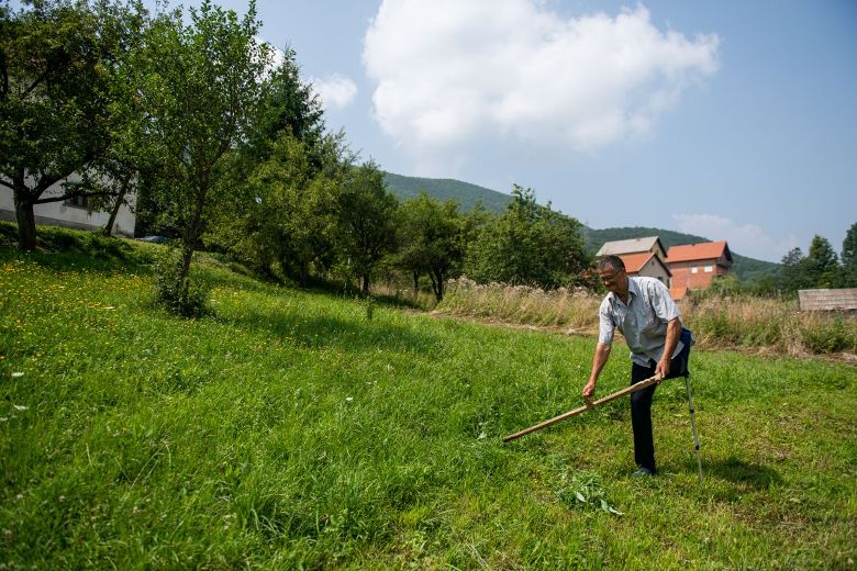 I porodica njihovog sugrađanina Ilije, dobila je plastenik. Ilija je nastradao u radovima oko kuće i od tada nema nogu. Njegova supruga kaže – najlakše je bilo dok je bio u bolnici, gdje je imao svu potrebnu njegu. Izazovi su počeli kad se vratio svakodnevnom životu. Korak po korak, pokret po pokret – danas Ilija kosi ručnom kosom, potpuno samostalno.