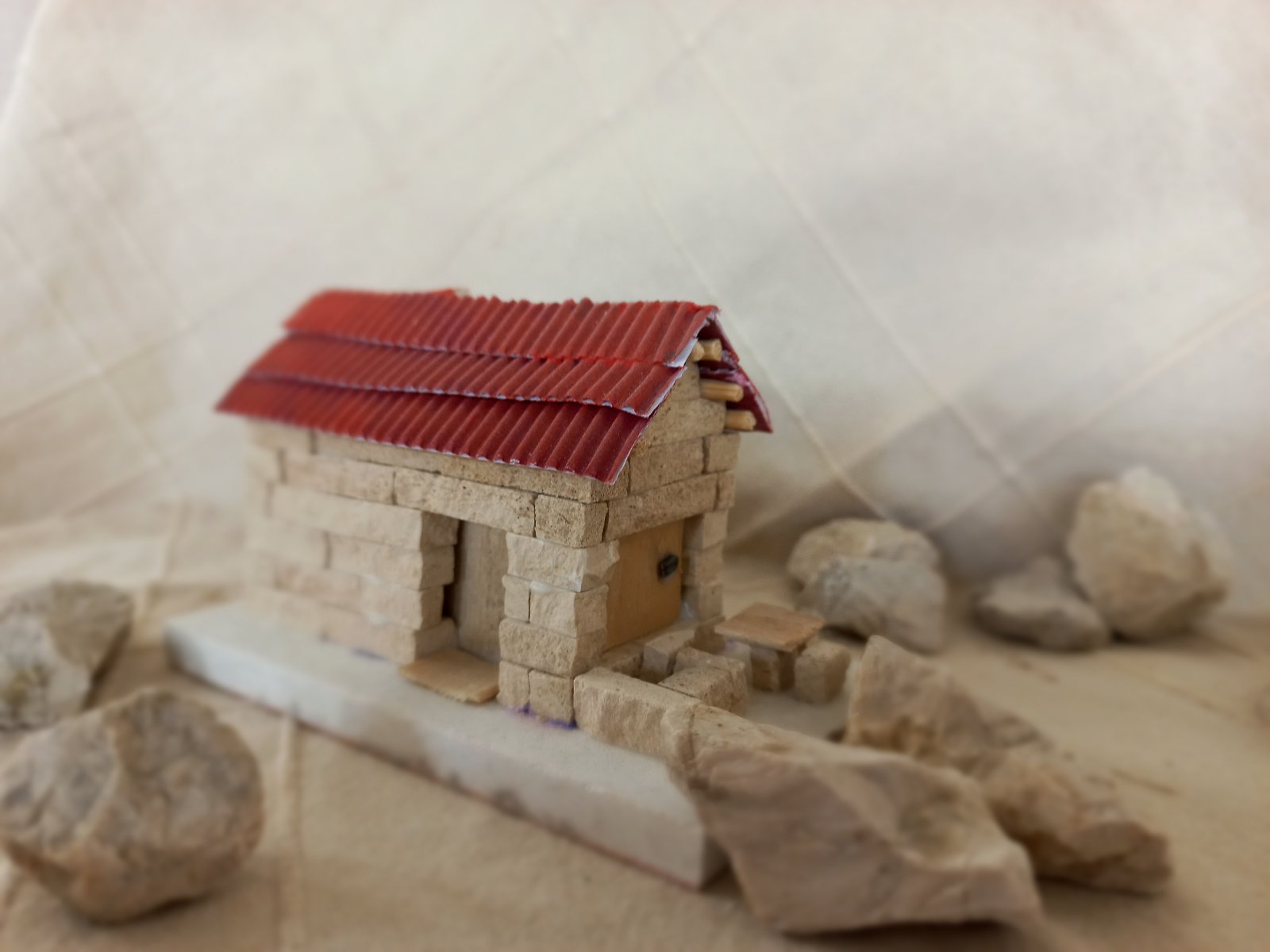 „Ideja postoji od prije jer se moja obitelj bavi obradom kamena. Kamen koji koristim je iz lokalnih kamenoloma. On je glavni za rad, uz njega u prirodi pronalazim drveće, razne ukrase, šišarke itd. Najprije mi klesar izreže kamen na trakice koje ja mogu klještima oblikovati u male komadiće, koji služe za zidove kućica i ostalo. Te sitne komadiće lijepim red po red, prema crtežu koji zamislim ili prema nekoj fotografiji, ako je narudžba određene kućice“, ističe Nikolina Miličević.