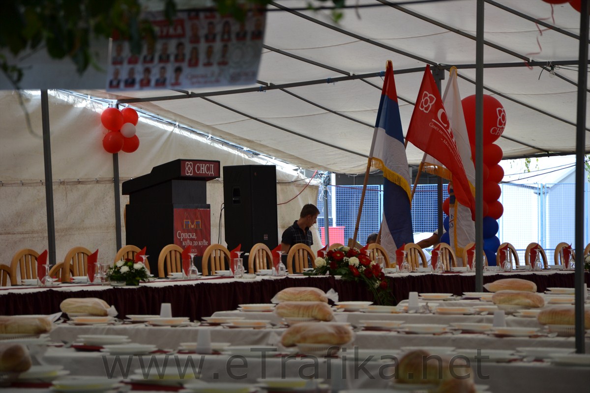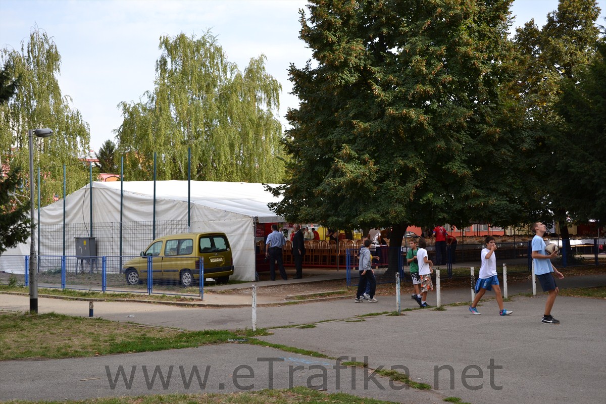 Na igralištu škole nalazi se veliki šator, sa jasnim obilježjima političke stranke. Uveliko se postavljaju stolovi i lijepe plakati, a oko šatora smo zatekli djecu iz Borika. Došli su da igraju fudbal, ali su se zbunjeni vratili kućama.