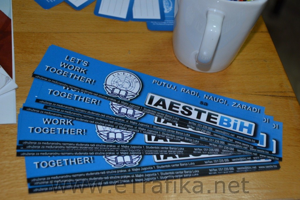 „Mi smo udruženje za međunarodnu razmjenu studenata radi stručne prakse. Osnovni cilj je da skupimo prakse u Banjoj Luci i BiH za strane studente, pa na osnovu toga domaći studeti imaju šansu da odu na praksu u inostranstvo. Razmjena je jedan na jedan. Prakse se obavljaju u stranim zemljama na fakultetima, institutima i privatnim firmama, iz oblasti studiranja. Trenutno je otvoren konkurs i traje do 09. decembra. Svi koji su zainteresovani da se prijave na praksu, mogu doći svaki dan od 12 do 14 časova u kancelariju u Prvom paviljonu. To je uvjerenje o redovnom studiranju, prosjek ocjena i aplikacija preuzeta sa našeg sajta.“