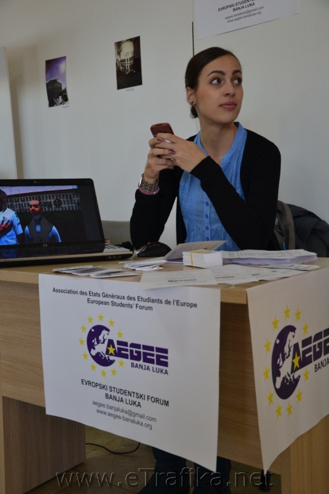 „AEGEEE promoviše jedinstvo, komnikaciju, neformalno obrazovanje i saradnju studenata u cijeloj Evropi. Naš član možete postati tako što popunite pristupnicu na sajtu aigee- banjaluka.org, a uvijek nas možete pronaći u kancelarijama u Kampusu gdje radimo sa Karijernim centrom.“