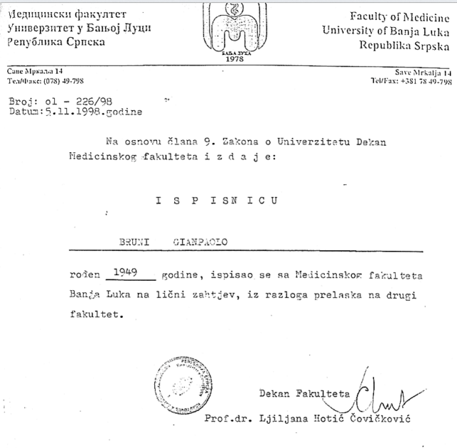 „I da vam ništa drugo nije sumnjivo, bila bi sumnjiva upravo ta godina kada su Italijani, navodno, počeli da studiraju. Pa, kako povjerovati da bi baš iz Italije neko došao da studira u Banjaluku samo godinu dana od završetka krvavog rata?“, kaže za Inforadar.bajedan od profesora sa banjalučke medicine.