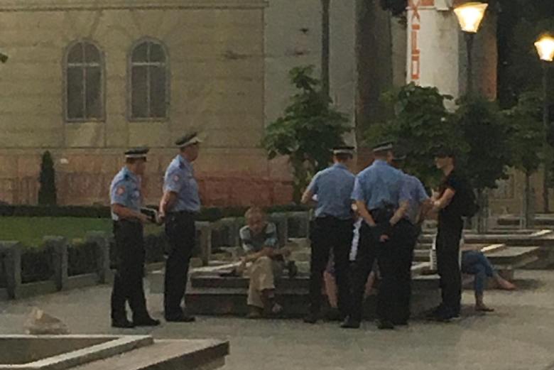 Između 19 i 19:30 časova policijski službenici, koji su prethodnih večeri onemogućavali ulaz članova grupe “Pravda za Davida” u dvorište Hrama, prišli su grupici građana koja je sjedila na obližnjoj klupi, te od njih zatražili lične dokumente i naredili da izvade sve predmete iz džepova.