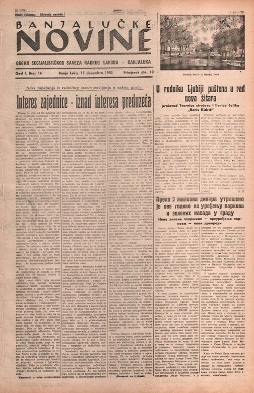 Nekoliko godina ranije, „Banjalučke novine“, u broju 16, od 15. decembra 1953. godine, konstatuju kako je „više od dva miliona dinara utrošeno ove godine na uređenju parkova i zelenih nasada u gradu“. Najavljene nove zelene površine, novi drvoredi, preuređenje parkova, dok u narednoj, 1954. godini, novinari „Banjalučkih novina“ prenose informaciju kako „komunalnu upravu čekaju novi zadaci na planu uređenja parkova i rekonstrukcije postojećih zelenih nasada“.