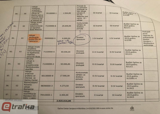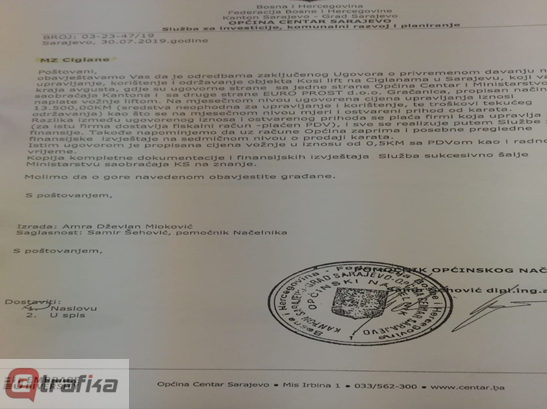 Iako je planom javnih nabavki određeno 6.000 KM za ovu vrstu posla, Euro Prost dobija 13.500 KM mjesečno za održavanje i upravljanje liftom. Ako građani plaćanjem karata ne uspiju skupiti toliko, razliku plaća Općina Centar.