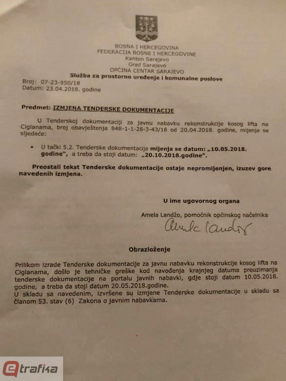 Nakon toga je stigao novi veliki posao. Osamnaestog novembra 2019. godine, ozvaničena je Obavijest o dodjeli ugovora za rekonstrukciju i druge trase lifta i postavljanje nove kabine za skoro 600.000 KM, tačnije 597.870,00 KM.