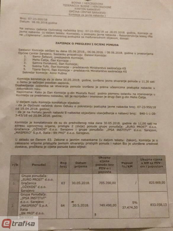 Gračaničkom Euro Prostu ovo nije prvi posao za sarajevsku Općinu Centar. Sredinom 2018. godine su radili rekonstrukciju ovog lifta jer je petočlana Komisija u Općini procijenila da je ponuda od 705.700.00 KM (825.669 KM sa PDV-om), koju su dali sa sarajevskim Džekosom bolja od ponude koju su dali italijanski Maspero, BN PRO i Ipsa Institut iz Sarajeva 749.490 KM (833.058,13 KM sa PDV-om). Početkom augusta 2018. godine, direktorica Euro Prosta d.o.o. Gračanica Refija Begović i načelnik Općine Nedžad Ajnadžić su potpisali ugovor za rekonstrukciju lifta. Naknadno su ugovarali posebne nabavke za opremu lifta vrijedne skoro 150 hiljada maraka i privremeno upravljanje liftom od oko 160 hiljada maraka godišnje.