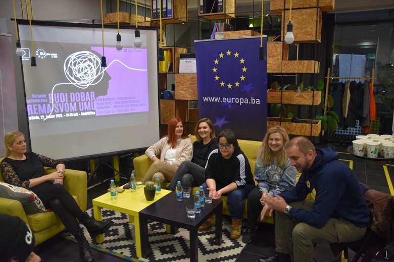 O odnosu književnosti i mentalnog zdravlja sasvim nedavno smo imali priliku da slušamo i same književnike. Info centar Evropske unije u BiH organizovao je panel diskusiju „Budi dobar prema svom umu“ koja se održala u Sarajevu, Mostaru, Banjaluci i Tuzli, i u kojoj su učestvovali savremeni bosanskohercegovački književnici. Učesnici diskusije su bili Selma Kešetović, Lejla Kalamujić, Senka Marić, Tanja Stupar Trifunović i Faruk Šehić. Na diskusiji u Banjaluci bilo je riječi o vezi između književnog teksta i psihologije, koliko je psihologija prisutna u njihovom književnom djelu, te kako je njima pisanje i čitanje pomoglo da se izbore sa sopstvenim krizama.