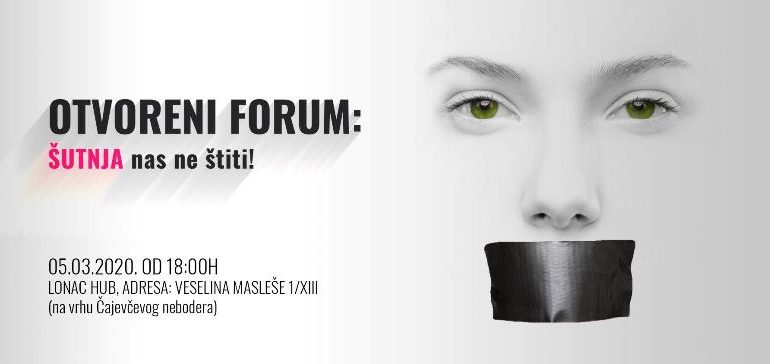 U skladu sa aktivnostima vezanim za obilježavanje “Međunarodnog dana žena” organizacije civilnog društva “Oštra Nula”, “KVART” i “Radnička solidarnost” pozivaju vas na javni događaj – otvoreni forum na temu “Šutnja nas ne štiti” u četvrtak, 05. marta, sa početkom u 18:00 časova u prostorijama Lonac hub-a, na adresi Veselina Masleše 1 / 13. sprat (na vrhu Čajevčevog nebodera).