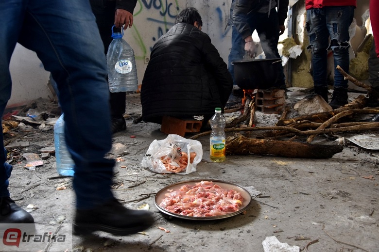 Jedan od najvećih skvotova nalazi se nedaleko od kampa Bira. U trenutku kada ih je posjetila ekipa eTrafike, tu je boravilo oko 120 muškaraca. Prostrana, napuštena građevina na dva sprata privremeni je dom ljudi iz Pakistana, Agvanistana, Bangladeša… Dok dio njih upija sunčevu svjetlost na otvorenom, ostali pripremaju ručak. Došli smo bez prethodne najave ili poznanstva sa bilo kim od njih. Samo smo se pojavili i upitali je li u redu da malo popričamo i snimimo atmosferu unutar građevine. Bez razmišljanja su pristali i pozvali nas da uđemo.