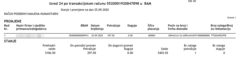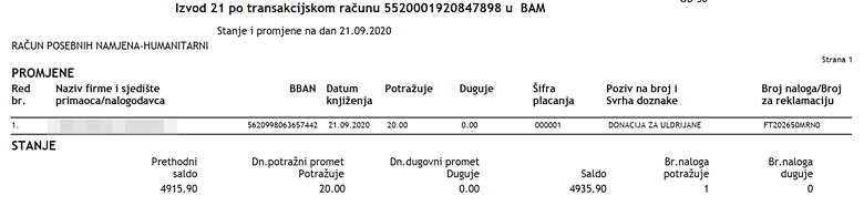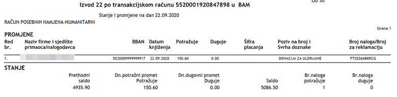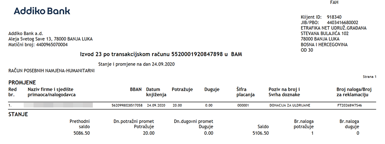 U nastavku pogledajte izvode bankovnog računa koji je naše Udruženje otvorilo samo za potrebe ove akcije.