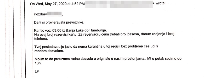 “Objavljeni tekst sadrži niz netačnih informacija, kojim se nanosi direktna šteta Društvu, a koje se odnose na obim pruženih usluga, način pružanja, ali i povrat novca. Neistinit je navod da je Društvo savjetovalo studente da se opredijele za putovanje avionom, kada je opštepoznata činjenica da su kontrole strože (naročito u vrijeme pandemije) u avionskom saobraćaju. Društvo je neformalno i neobavezno dalo savjet da se putuje kopnenim putem (Kantić turs) i skoro svi studenti koji su bili prijavljeni za program odlaska na rad u SR Njemačku su otišli kopnenim putem, bez bilo kakvih problema. Dakle, ukupno 40 studenata je otišlo kopnenim putem i uredno pohađalo program rada. Međutim, samo dva studenta su samoinicijativno odlučila da putuju avionom (pored preporuke da se putuje autobusom), odakle ih je kontrola vratila”, stoji u dopisu upućenom našoj redakciji.