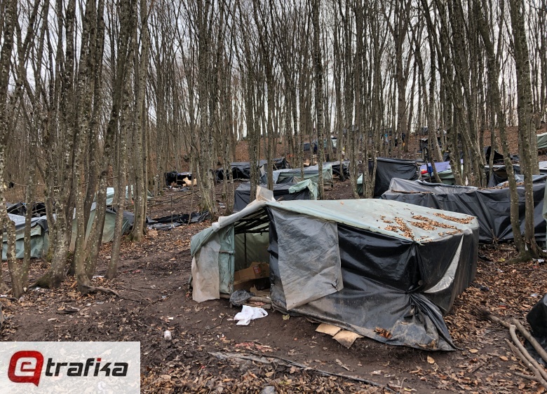 Početkom oktobra ove godine u ovoj šumi bilo je oko četiri stotine migranta. Ekipa eTrafike je tada zatekla nešto što se najbolje može opisati kao malo naselje. Prvi šator imao je funkciju džamije, a u šumi je bilo i nekoliko pasa o kojima su se migranti brinuli. Organizovali su sistem za odlaganje smeća, a na obližnjoj rijeci su se kupali i prali odjeću. Činilo se da skoro svi imaju svoje zaduženje, pa su tako neki pripremali hranu, a jedna osoba je bila “frizer” i skraćivala drugima kosu.