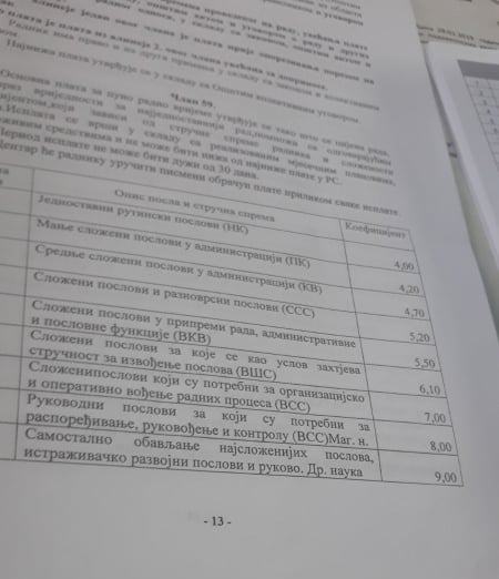 „Radnicima se isplaćuju plate u neredovnim četvrtinama, tri plate su isplaćene samo direktorovim saradnicima. Njima se redovno isplaćuju pune plate, kao i dodatni bonusi na osnovu odluka Centra i to na iznose veće od 1.000 KM. Ne postoji sistematizacija radnih mjesta, zapošljavaju se zdravi ljudi bez ikakvih pravila, a rijetke su osobe sa invaliditetom koje mogu da dobiju posao u Centru. Šefica komercijale (ime poznato redakciji) zaposlila je svoja dva rođena brta. Šefica računovodstva (srednja stručna sprema) je zaposlila kćerku, koja je po zanimanju učiteljica i to u istu kancelariju sa sobom. Donedavna čistačica, a po zanimanju šnajderica je misteriozno postala grafički dizajner, poslovno napredovala i postala čak predsjednik sindikata radnika“, navodi se, između ostalog, u pomenutom pismu.