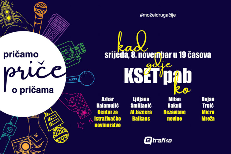 Zato vas pozivamo da dođete u KSET u srijedu, 8. novembra u 19 časova, i direktno od novinara saznate šta im se sve dešava tokom rada. Naši drugari iz KSET-a organizuju rok svirku nakon našeg događaja, što je sjajna prilika da se družimo u opuštenoj atmosferi. Ne zaboravite da neposredno prije događaja od ekipe eTrafike preuzmete kupon za besplatno piće u pabu KSET.