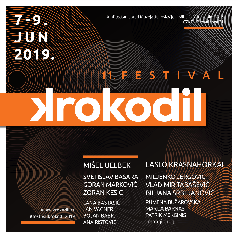 Festival KROKODIL (Književno Regionalno Okupljanje Koje Otklanja Dosadu I Letargiju) književni je festival koji na jedinstven i originalan način predstavlja književnost regiona u njenom punom obimu – bez generacijskih, poetičkih, rodnih ili bilo kakvih drugih isključivosti. Svojim modernim i dinamičnim pristupom u predstavljanju pisaca, koje čini čitanje uz korišćenje savremenih video i audio medija, muzičko-scenski performansi, kao i širokim izborom koji uključuje poeziju, prozu i dramski tekst, festival KROKODIL je od svog osnivanja 2009. godine postao jedan od najposećenijih književnih događaja u regionu. Do sad je održano osam letnjih festivala i dvanaest gostujućih izdanja našeg festivala u sedam evropskih zemalja, uz učešće preko sto pedeset pisaca iz zemlje, regiona i Evrope.