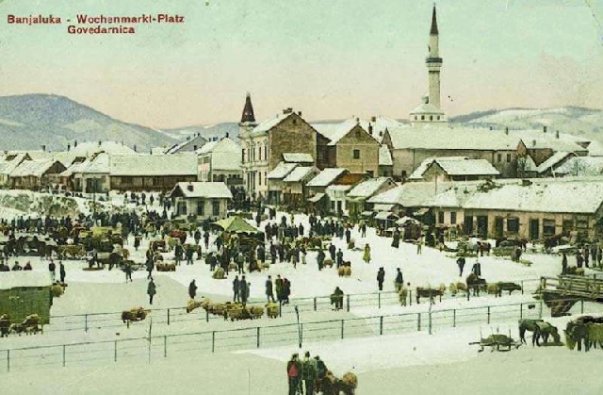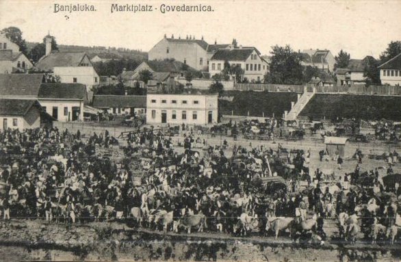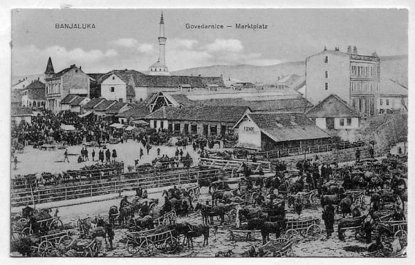 Govedarnica (Marktplatz u doba Austro-Ugarske), površina od 5.547 m2 ispod zidina Kastela, sa lijeve i desne obale Crkvene, nedaleko od njenog ušća kao pazarište i sajmište pominje se krajem XVI i početkom XVII vijeka.