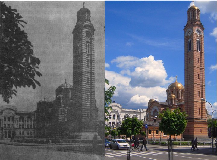 Hram Svete Trojice pred početak Drugog svjetskog rata (vjerovatno 1930-ih godina) / Hram Hrista Spasitelja 2010. godine
