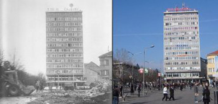 Na naslovnoj fotografiji vidimo Trg Krajine nakon razornog zemljotresa 1969. godine, te kako izgleda danas.
