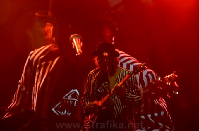 Na festival smo stigli nešto posle 21 čas, taman na nastup Ramba Amadeusa. Rambo je bio u svom stilu, sa šeširom na glavi, pivom u jednoj i cigarom u drugoj ruci zabavljao je publiku svojim šalama i doskočicama, a na kraju je otpjevao i pjesmu koju je napisao “svom drugaru Jamiroquaji”. Ne sjećamo se kako je tačno glasio tekst pjesme, ali je poenta bila da neko tu nosi duge gaće. Odlazeći sa bine Rambo je od publike tražio da ga isprati pjevajući “čobane, vrati se, ovce tvoje ne mogu bez tebe”.