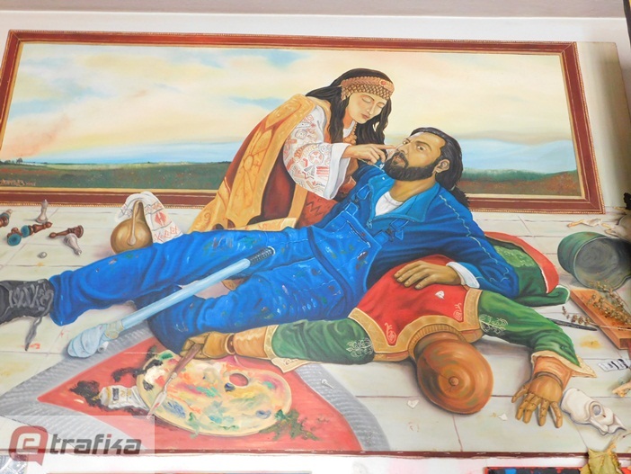 „Tu sliku je neko kupio za poklon. Na pijaci se prodavala za 30 KM i bila je u lošem stanju. Rekli su da je djelo ‘tamo nekog nepoznatog slikara koji je odavno umro’. Sada je kod mene, evo je ovdje na zidu“, govori nam on pokazujući svoje djelo.