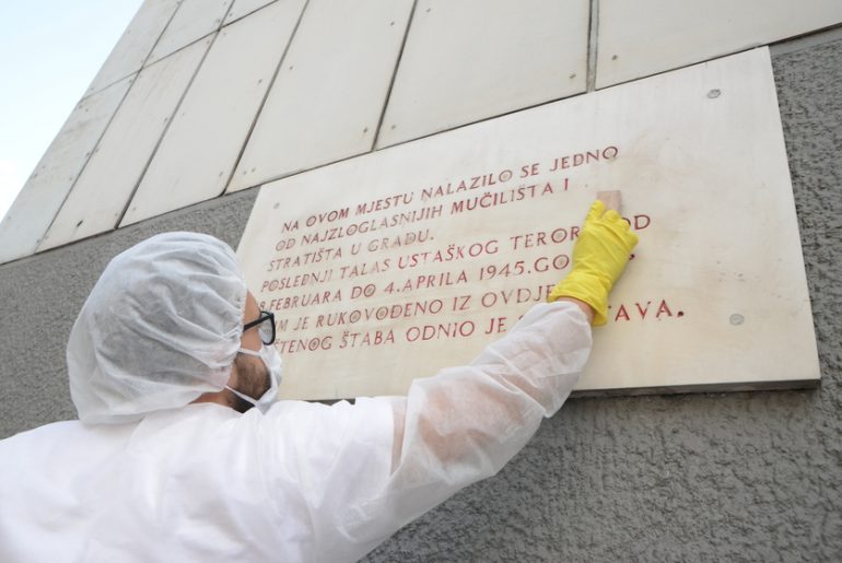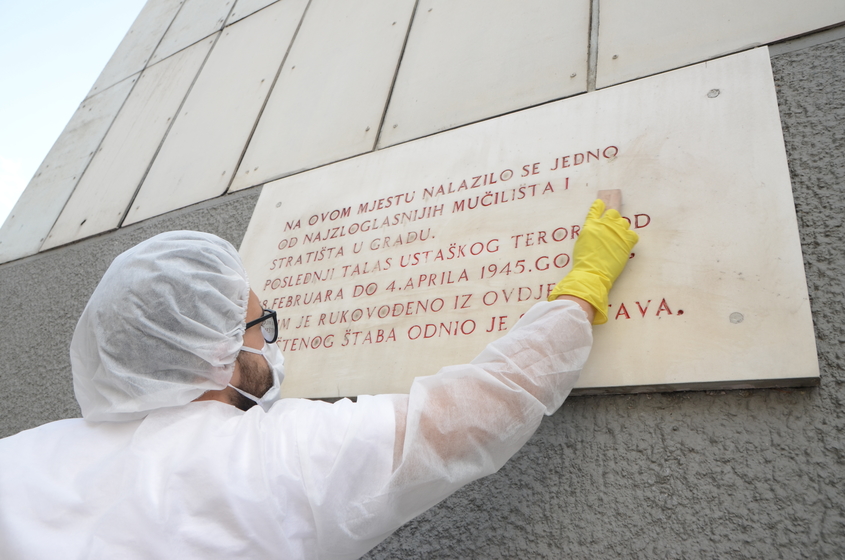 „Odlučio sam se da taj spomenik sredim sa dvojicom kolega, sa kojima sam tada studirao. Nas trojica smo to upriličili na jedan poseban način u zaštitnim odijelima, koje danas zovu Covid odijela. Maskirali smo se da izgledamo što profesionalnije i da tako obučeni sredimo spomenik. Tada smo tu reakciju snimali i bilo je izuzetno interesantno kako su nas promatrali ljudi koji su prolazili. Policija nas je isto zagledala, ali niko se nije puno obazirao na to što radimo, misleći valjda da smo profesionalci koji rade svoj posao po nalogu“, prisjeća se Mak.