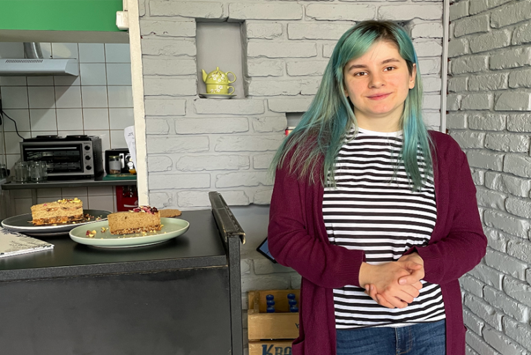 “U početku je ideja bila da to bude jednostavno kafić sa smutijima, sokovima, i jednostavnim jelima. Poslije se jelovnik proširio, i ono na što smo ostali fokusirani su veganski kolači gdje ja mogu da ispoljim svoju kreativnost”, kaže ova mlada preduzetnica koja proteklih nekoliko mjeseci učestvuje u programu BizUp koji provode Fondacija 787 i UN Women u BiH, uz finansijsku podršku vlade Ujedinjenog Kraljevstva.