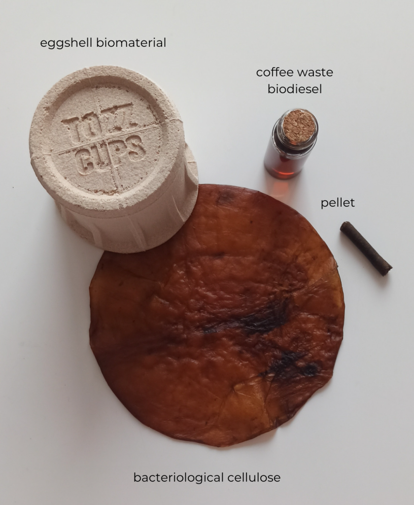 Pored bakterija, proizvodi biomaterijal i od čvrstog otpada, na primjer ljuske od jaja, oraha, kestena. Pozninici joj poklanjaju svoj kućni otpad i tako joj olakšavaju posao.