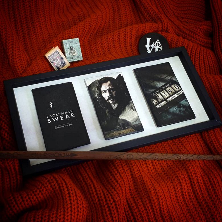 “U ponudi se prije svega ističu slike i štapići od kojih je i počela cijela priča. Zatim, tu se mogu naći setovi stikera i bookmarka koje digitalno crtam, bedževi i magneti raznih veličina, ali i kalendari u zidnim i stonim varijantama, mnoge dekoracije i figurice, metlice, pisma sa Hogwartsa, te šalovi i kape u bojama dobro poznatih kuća. Naravno, ukoliko neko izrazi želju, može poručiti i poklon set u vidu Hogwarts kofera ispunjenog raznim predmetima, ili novogodišnju kuglu koja čuva minijaturne verzije rukotvorina”, govori naša sagovornica, koja pored Hari Poter fan stvari, pravi i one sa likovima Marvelovih junaka.