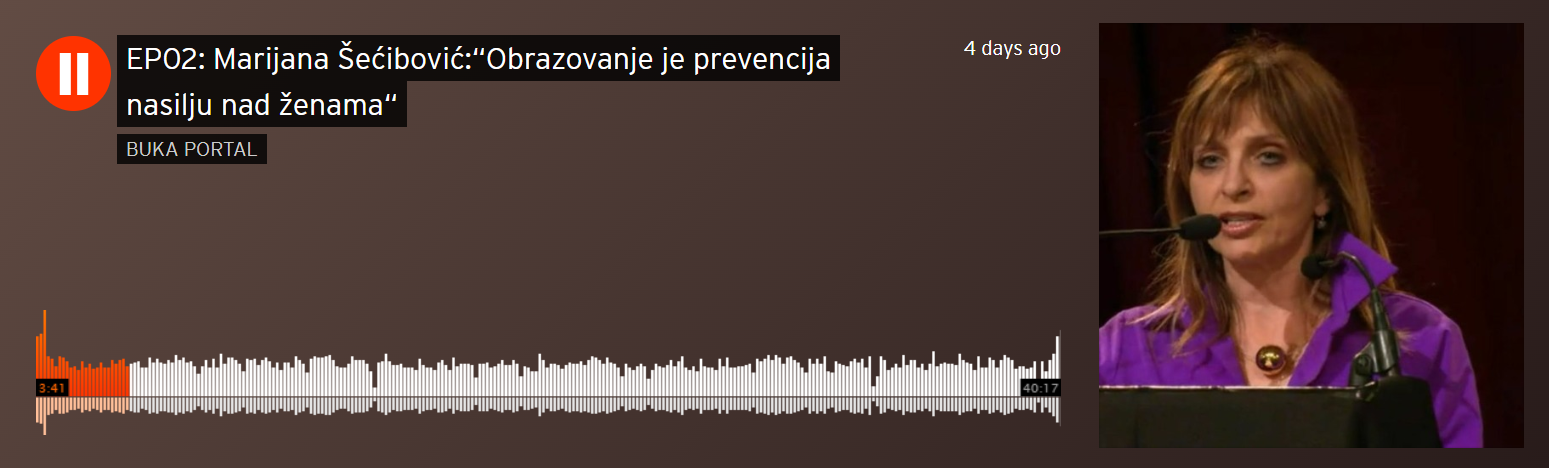 Gošća drugog u seriji od deset podcasta „Mrzim kada sama šetam noću“, koji se kroz eksplanatorno novinarstvo baviti problemom nasilja nad ženama, je prof. dr Marijana Šećibović. Biološkinja, komunikološkinja, feministkinja i dekanesa na Visokoj školi za turizam i menadžment Konjic, koja je pokrenula projekat „Obrazovanje obespravljenih djevojaka i žena u BiH“ kao prevenciju siromaštvu i nasilju nad ženama.