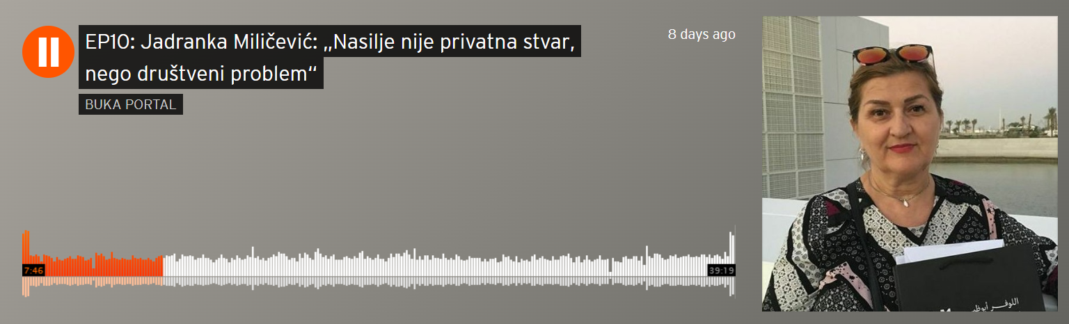 Gošća u posljednjoj epizodi podcasta „Mrzim kada sama šetam noću“ je Jadranka Miličević, direktorica Fondacije CURE, mirovnjakinja, feministkinja, aktivistkinja, borkinja za ženska prava i uspostavu trajnog mira u zemlji i regionu. S njom smo razgovarali o feminizmu, ženskom aktivizmu u ratnim i poratnim vremenima, ženama u politici, osnaživanju žena i važnosti zajedništva i solidarnosti.